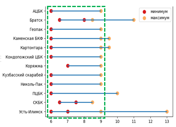 - Анализ и выявление общих диапазонов показателей качества.