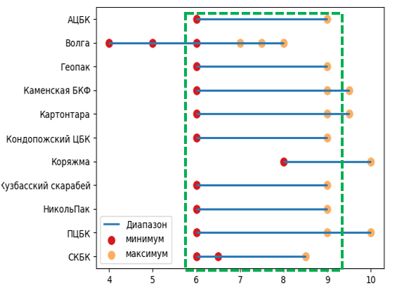 - Анализ и выявление общих диапазонов показателей качества.